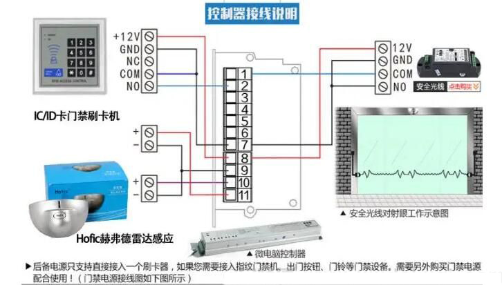 自動(dòng)門與門禁控制器的接線方法: