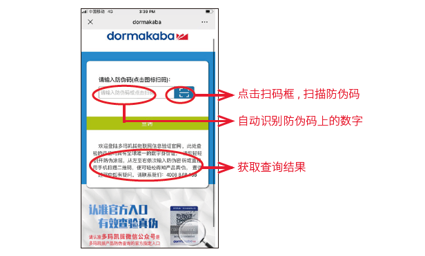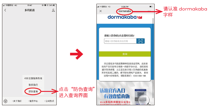 由于多瑪五金的市場占有率極高加之品牌影響力巨大,市場流通著很多假冒的多瑪地彈簧產品。這嚴重損害了消費的合法權益,為了方便顧客朋友查詢真假,多瑪官方也是進一步提升了防偽標識。今天小編就來教您如何查詢多瑪地彈簧真?zhèn)?,以便您快速地查詢到自己所購產品的真假!DORMA多瑪地彈簧真?zhèn)稳绾伪鎰e,附官方查詢方法!如下: